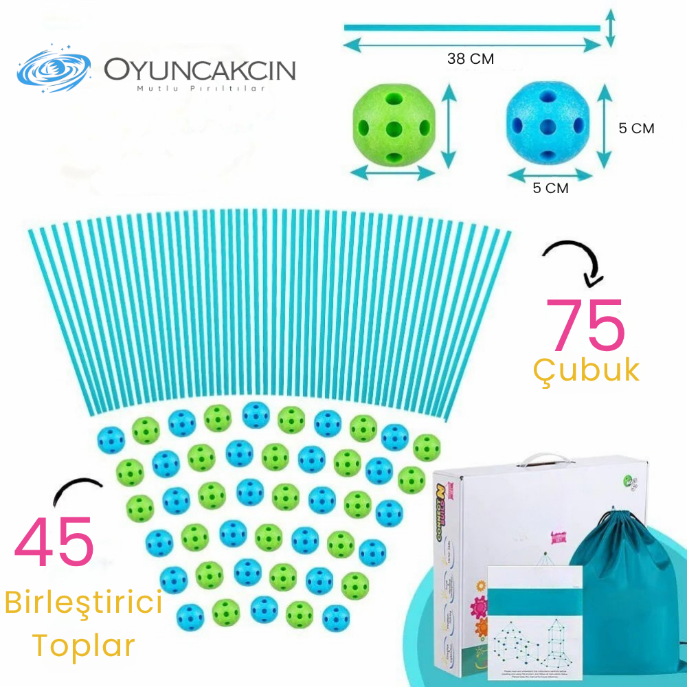 Set içerisinde toplam 85 parça bulunur: 85 bağlantı çubuğu ve 45 birleştirme topu.