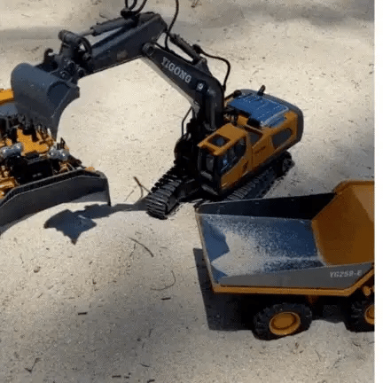 Ekskavatör, hassas ve gerçekçi hareketler için 11 kanallı kontrol sistemine sahiptir. Tüm araçların kumanda menzili 25 metreye kadar çıkabilmektedir, bu da hem iç hem de dış mekanlarda rahat oyun imkanı sunar.